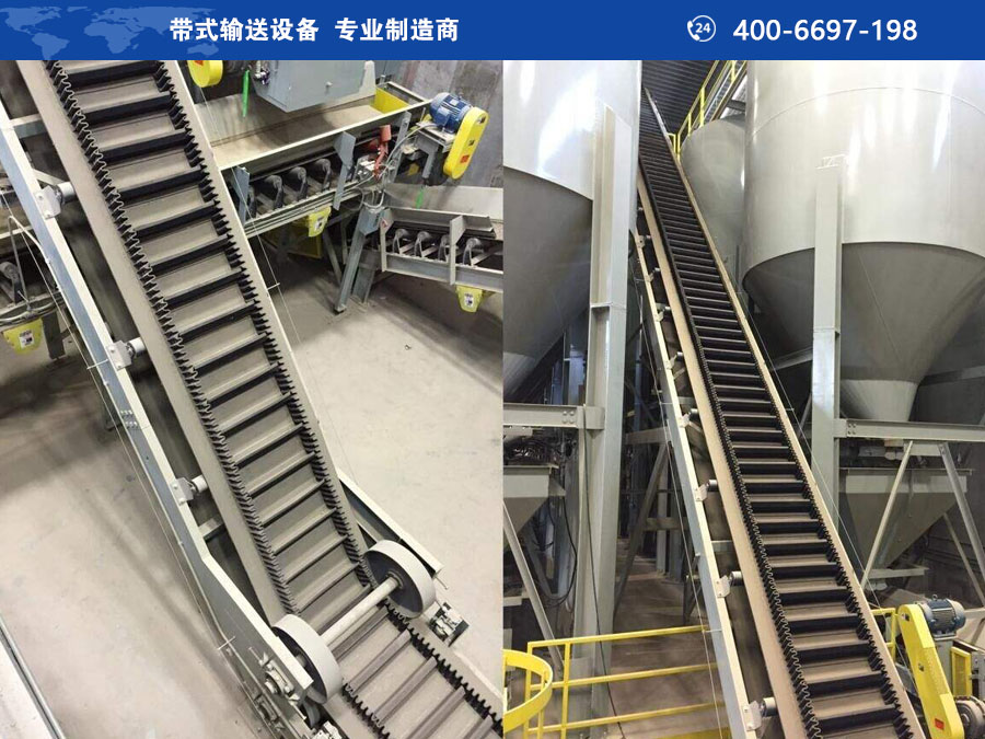 DJ大倾角挡边带式输送机在冶金、煤炭、电力、建材、建筑、化工、轻工和粮食等广泛的行业内适用。
