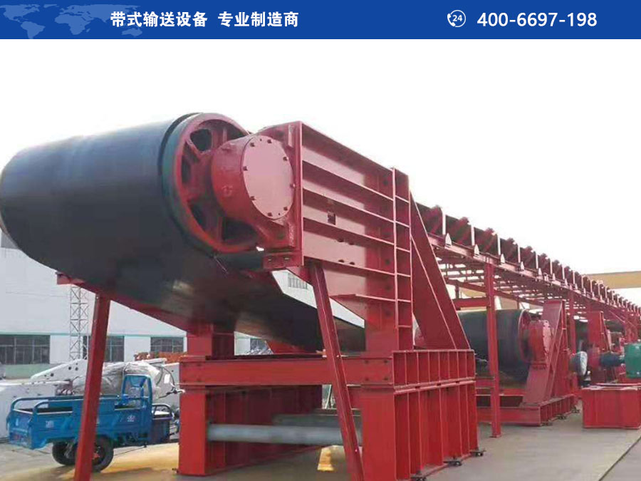 DTII型带式输送机主要由橡胶输送带、传动滚筒、改向滚筒、拉紧装置、托辊、机架以及传动装置等几部分组成。