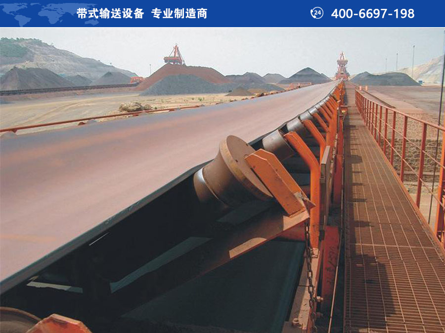 输送带通常采用橡胶带,向上输送散粒料的倾角12°~24°。对于大倾角输送可用裙边橡胶带。作用:在TD75型带式输送机中起拽引和承载作用。