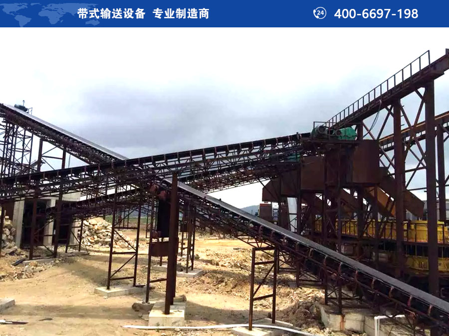 矿山带式输送机属于一般通用型带式输送机。是散料、块料、袋料等物料理想的高效连续传送设备,与机车或人力运输相比,矿山带式输送机具有输送距离长、运量大、可连续输送等优点,并且运行可靠,容易组成自动化和集中化控制。当输送能力和运距较大时,矿山带式输送机还可配置中间驱动装置来满足要求。根据输送工艺的要求,可以单机输送使用,也可多机组合成水平、倾斜或带有角度的运输要求来完成物料的输送。